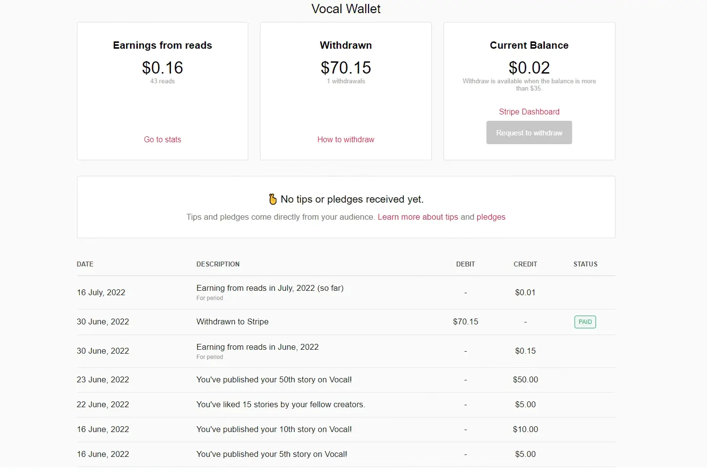 国外vocal平台,类似于国内的今日头条平台,平台内的话可以发布文章赚钱,发布一篇文章可以赚1美金,一个号最少可以撸到70美金,周期大概是5-10天左右,可以同时批量起号来做,无任何风控,多号多撸,目前是全网独家项目,全网首发,上个月亲测了一个月,实操账号已经到账