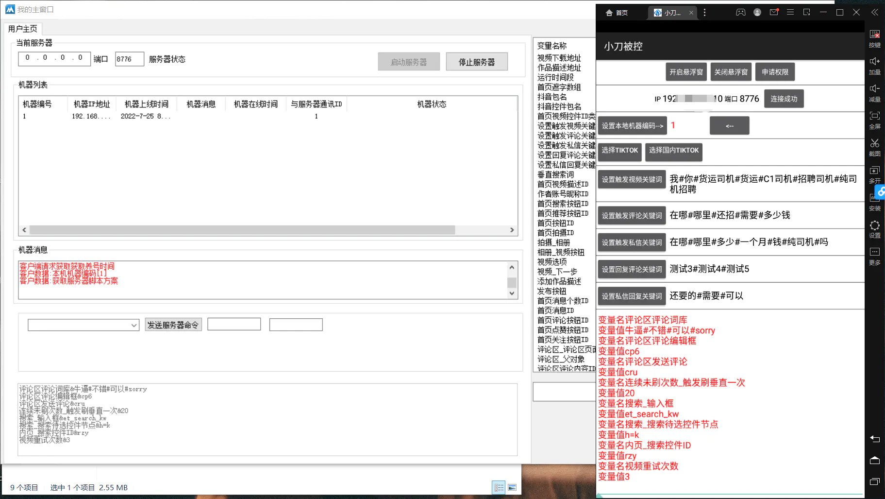 要通过连接IP地址就可以自动操作,前提手机和云控软件IP地址必须在一个域网