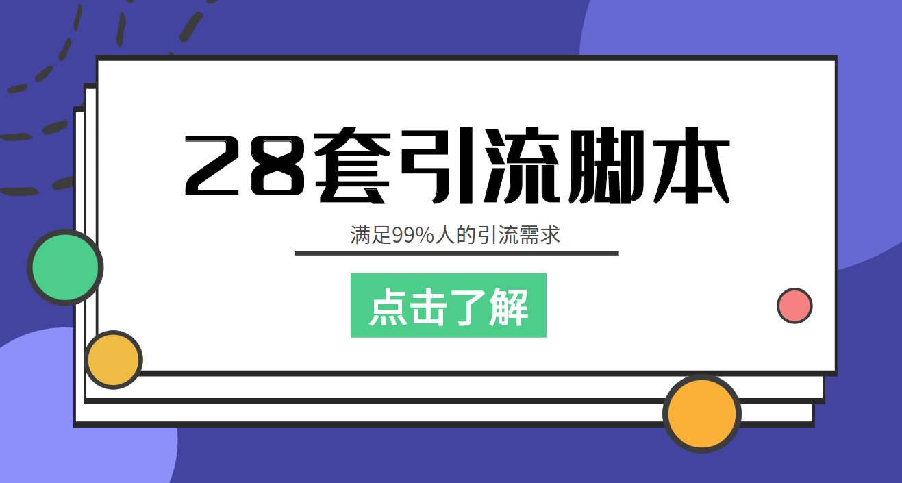 共包含28套引流脚本,每套引流脚本都带有详细的使用教程和相关配套软件。
