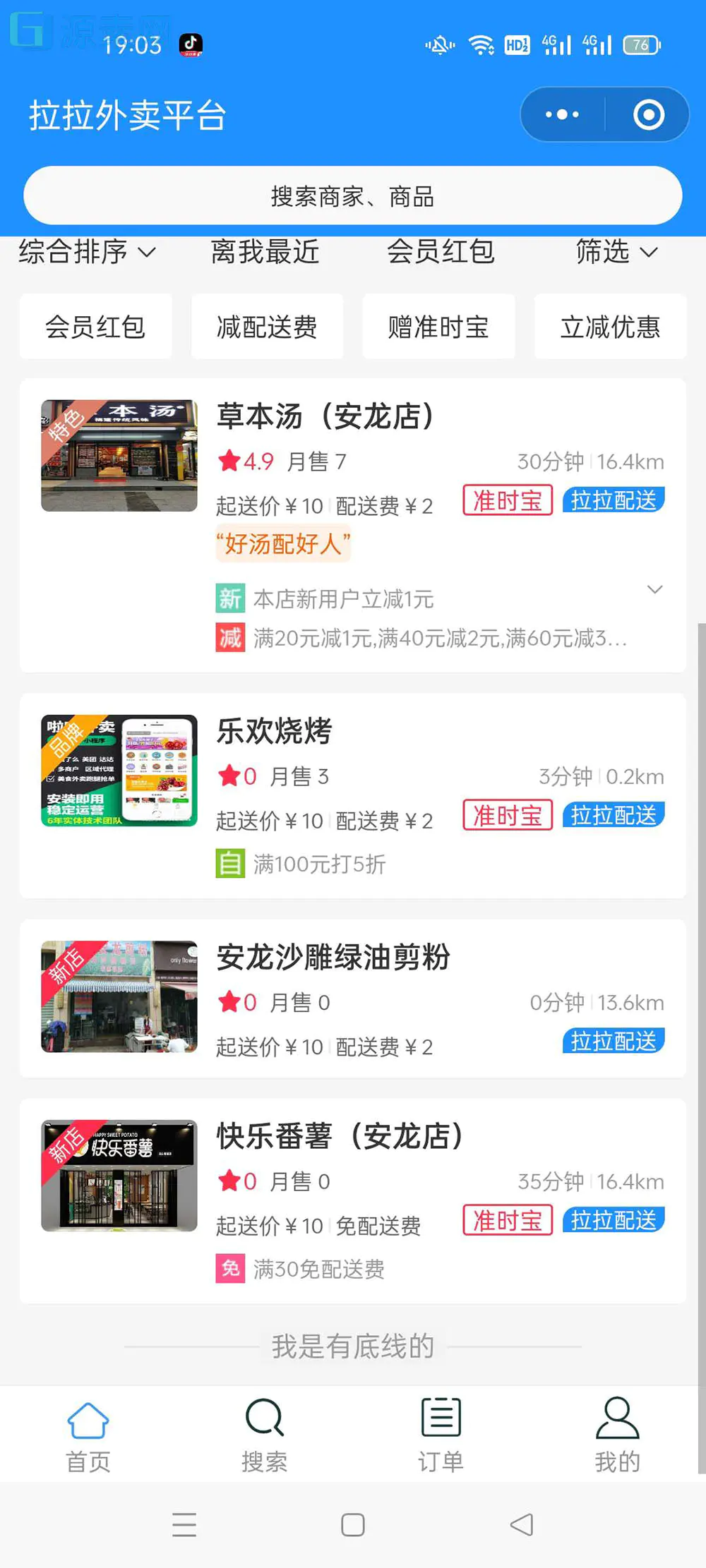 支持小程序端,H5,APP,有骑手端,商家端,顾客点三端。