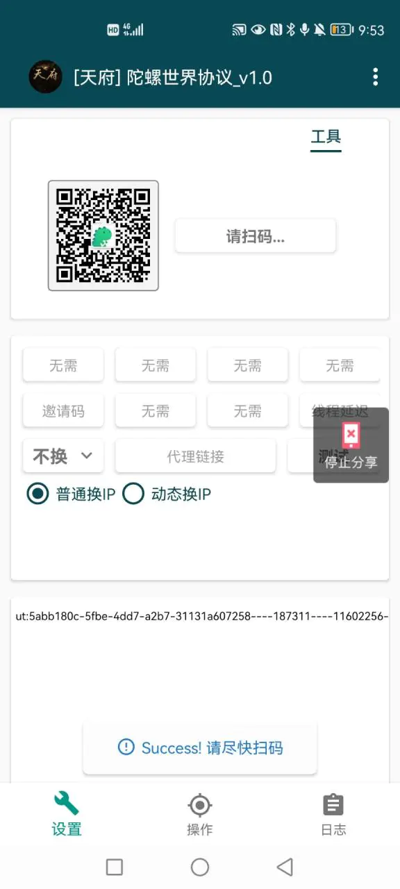 陀螺世界的协议脚本是最新的版本,只需要扫码登录上就可以操作了。广告看完等隔天自动恢复就可以继续了,建议号多的话批量搞就是最省事的。