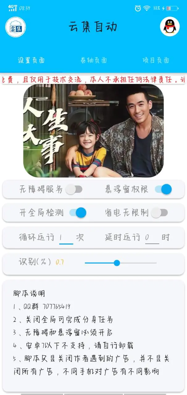 自动看广告、自行做任务,后期还会添加更多的脚本,实现脚本自由。
