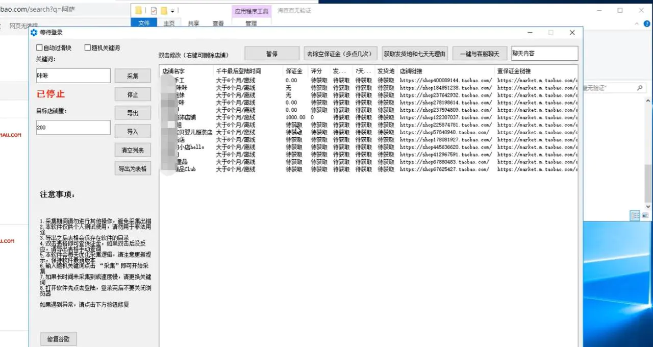 下单需注意:另外,死店采集只是一个名称,这个软件主要是去筛选近期不活跃的以及近期接近0销量的店铺,具体是否是死店,需要你自己进一步的尝试,因为谁也无法百分百承诺去说某一个店铺老板不会上线,就好比我可能知道你这一时半会不会登录咱们平台,那你过了一会可能会登录是一个的道理,望理解,软件仅是辅助筛选。