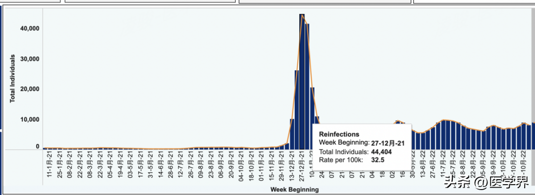 但值得注意的是,根据英国的数据,93.4%的重复感染都发生在奥密克戎流行后。而纽约州的“重复感染趋势图”则同样显示,这种情况始于2021年底。