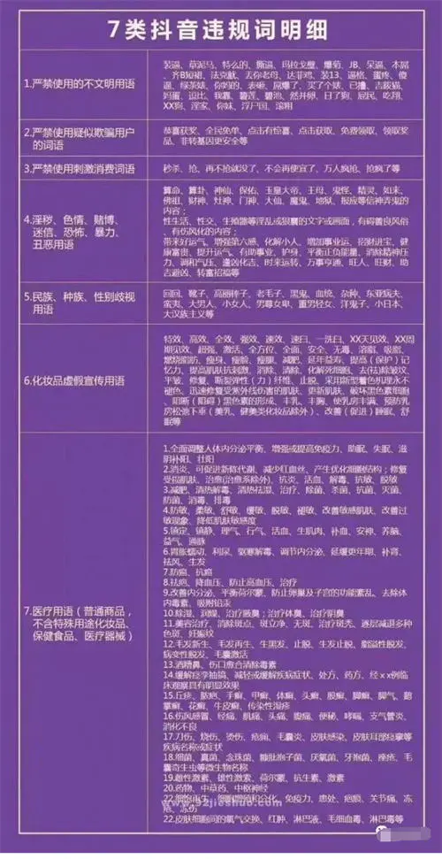 抖音作为互联网最火的自媒体平台,成就了无数平凡人的梦想,如果小白想利用抖音赚取自己的第一桶金也不是遥不可及。今天整理了抖音最全运营资料,教你如何起号,教你作品不被限流,如何避险避坑!这对于想在抖音上分一杯羹的小伙伴来说是十分重要的!![]() 首先,很多小白问海哥,我为什么没流量?为了解决‘’抖音限流降权违规‘’的问题,海哥专门整理了我们5年实操经验,可谓说是价值千金!解决问题的第一步,是需要去发现问题根源,我们才能有效地解决。找到哪里出了问题,才能对症下药。 一、先天性限流 先天性限流:简单来说,就是指你账号本身存在问题,导致你发布的作品一开始就没有什么流量。 1.造成先天性限流的原因,主要有以下几个方面: 1)账号昵称、抖音号、头像、个性签名、主页背景图使用违规; 2)账号信息频繁修改; 3)账号内容里面存在违规词语; 4)你账号里面留了联系方式(如威信、围脖、扣q等字眼),这些其实很容易被平台检测,别看别人留没事,其实你账号的权重和别人的权重完全不一样; 5)账号频繁登陆登出、频繁更换设备; 6)同一个手机、同一个IP批量注册多个抖音账号; 7)同一个WiFi下面登陆了多个抖音账号(最好不要超过5个); 8)抖音账号定位频繁(比如上午在北京,下午在广东),而且利用模拟器等非官方软件开启被平台检测; 2.解决以上限制的方案: 1)按照正常用户操作抖音账号,需要完成实名认证、绑定手机号,而且关联第三方账号(微信、微博、QQ、头条)这样都可以让平台产生信任; 2)保证一卡一机一号,每天分时间进行正常操作(如转评赞、关注、收藏等),最好一个内容浏览完毕在去浏览下一个,也不能每个账号都主动关注; 3)账号昵称、抖音号、头像、个性签名、主页背景简单设置,千万不能出现违规词和违规操作; 二、低质量限流 首先大家先要弄明白什么是低质量账号? 在抖音上,有很大一部分用户仅仅为了好玩,随便发一些视频。作品内容没有主题,而且质量一般,因此长期这样就被平台判定为“低质量账号”。 1、低质量账号特点: 1)发布内容没有主题,不够垂直; 2)视频内容模糊、表达内容不够明确(抖音希望用户看到有价值及正能量内容,很多低质量内容不会被推荐); 3)视频时间过短(一般短视频时间都会大于7秒); 2、如何提高内容质量? 1)视频内容需要有主题,能够吸引粉丝产生更多点赞、关注及互动; 2)账号的定位要清晰,持续不断输出有内容或有价值的视频; 3)建议关注你想创作领域的同行,看看别人是怎么做的,先模仿,再创新; 三、违规操作限流 目前,找我们咨询抖音限流的绝大多数粉丝,问题都出在这里: 1.直接植入硬广,加入了品牌词或违规词 1)抖音账号昵称、抖音号、头像、个性签名、主页背景图留了联系方式(如威信、围脖、扣q等); 2)作品内容明显是营销广告,平台直接限流; 3)作品中出现商品logo、微信号、手机号、二维码(一般出现时常不能超过2秒); 4)作品中出现其他平台、APP以及工具的水印; 5)抖音直播中有明显的引流、卖货、推销行为,而且存在违规词; 2.利用第三方平台或人为转发或评赞 1)快速回复大量的评论或转发、留私信; 2)在回复信息含有(微信、手机、商品名称、购物链接等字样)而且存在违规词语; 3)在评论、私信中出现脏字、谩骂他人; 3.频繁删除或发布作品 1)频繁删除已发布作品(如果视频不满意,可以选择隐藏); 2)频繁地大量发布作品; 4.搬运、伪搬运 1)从第三方平台搬运作品做平台检测,或者被人举报; 2)同一视频多次重复发布; 3)大量使用最新的影视、综艺,以及他人原创作品,被系统识别侵权; 5.一切刷量行为 利用第三方平台进行刷粉、刷转评赞、刷播放量!这个只要被平台检测到账号就会受限! 6.视频中出现其他违规 抖音在社区自律公约中有针对视频违规行为的规范和约束: 1)视频中是否有侮辱谩骂的言论; 2)衣着是否暴露,包括游戏的衣着暴露与姓暗示; 3)是否涉及政治敏感问题; 4)是否有不良的引导,性别取向的引导,游戏里面坑队友,卡BUG,破坏游戏体验; 5)是否有争议的话题,还有一个画面是否太过单一,在一个场景中,变化太少; 6)游戏画面过于真实、武器很暴露,场面很血腥; 7)是否品牌商标过于暴露; 8)是否有造谣传谣、涉嫌欺诈的行为; 9)是否存在诱导点赞、分享、关注; 7、视频文案违规 1)文案留有联系方式、商品信息; 2)文案诱导用户点赞、评论; 3)文案中含违规词。 ![]() 如何解决作品限流及养号: 1、删除违规作品,如果量大建议先隐藏; 2、如果账号被封禁或警告,一般需要进行1周左右的养号操作(模拟正常用户使用抖音,浏览及发布正常作品); 3、保持每天的更新,提升作品质量,只要不被封号,流量就可能恢复 ![]() 四、抖音降权 如何判断自己抖音号被降权? 1.僵尸号 如果你连续一周内发布的作品,播放量在100以下,那你的账号可能就为僵尸号。这里建议你重新注册抖音号。如果你的账号是僵尸号说明平台根本不会给你流量推荐,而且平台上搜索不到你的作品。 2.最低权重号 如果你连续一周发布作品,播放量在100一200的播放量徘徊。平台就认定你这样的号为最低权重号。一般来说这样的账号平台只会被推荐到低级流量池(100人左右的流量),如果持续半个月到一个月流量没有改善基本也可以定义为僵尸号。 3.中途降权 如果你的账号本来流量正常,突然发了一个违规视频(可能包含违规信