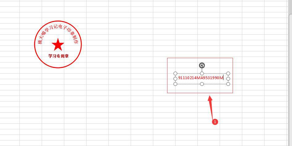 2、制作印章编号,在复制的文本框中,输入电子章编码,然后设置合适的大小