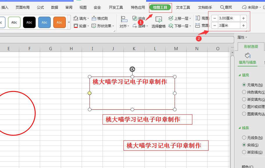 6、然后点击“绘图工具”-设置高度和宽度都为3厘米