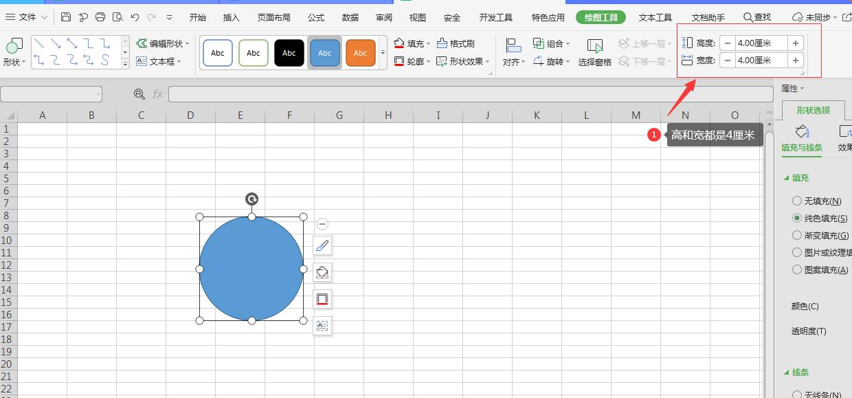 2、圆形尺寸选择高和宽都是4厘米