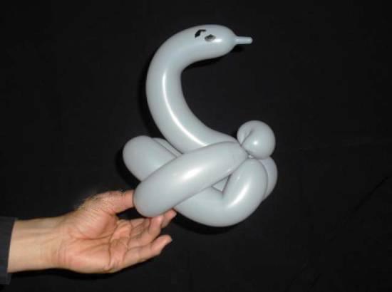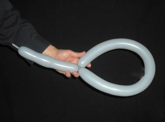 6,将剩下的1/3的气球倒弯过来,并且要稍微坚持一小会,形成天鹅的脖子。你可能要稍微练习一下,看看要从哪里弯折比较好,但是最后,你最终能弯出天鹅优雅的脖子。