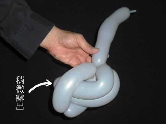 7,在天鹅脖子的最下方来个单结扭,这样可以让脖子固定住。