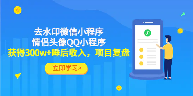 今天分享我在发现市场上存在「去水印」、「情侣头像」的需求后,通过微信小程序 QQ小程序这两个生态,做了2个产品线,经过两年多的发展,累计服务接近2000万人,获得睡后收入300W的经历。
