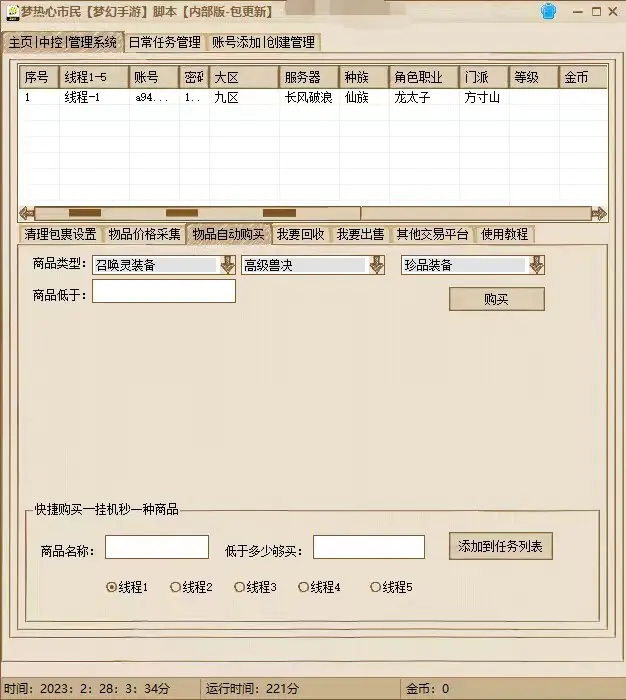 脚本内置起号,打金,挖矿,押镖,日常等等全功能具备。