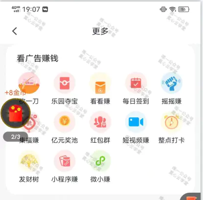 分为四大板块: 看视频赚钱、高额任务赚钱、简单任务赚钱、休闲赚钱。