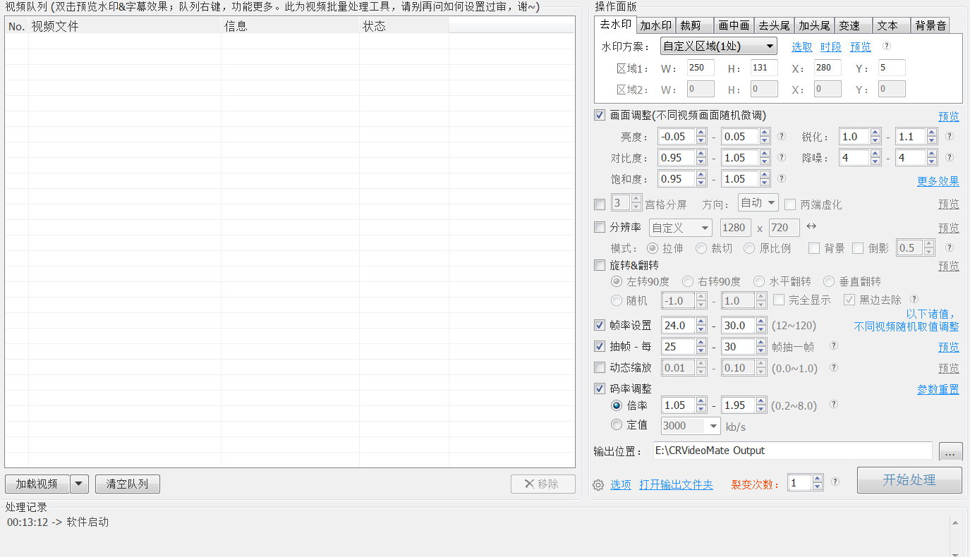 大家知道,视频查重是通过检测视频的一些参数来进行判定是否重复的,这个软件就是通过改变视频的重要指标参数来达到规避重复的目的,如水印、裁剪、画中画、变速、帧率、码率、分辨率等等,设定后一键就能改变。