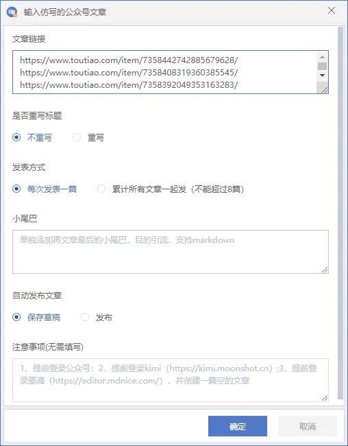 支持公众号、头条、知乎等大多数平台的文章链接导入。