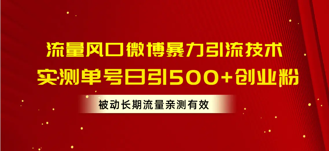 今天来给大家拆解一个微博引流创业粉的方法,也是我们自己在做的一个引流渠道,而且这个玩法是无需原创的,纯搬运就可以了 1图 众所周知微博上引流的粉质量是非常高的,所以首负非常注重微博引流,自己也实操了几个号,流量都非常有质量,并且微博对于引流的限制非常轻