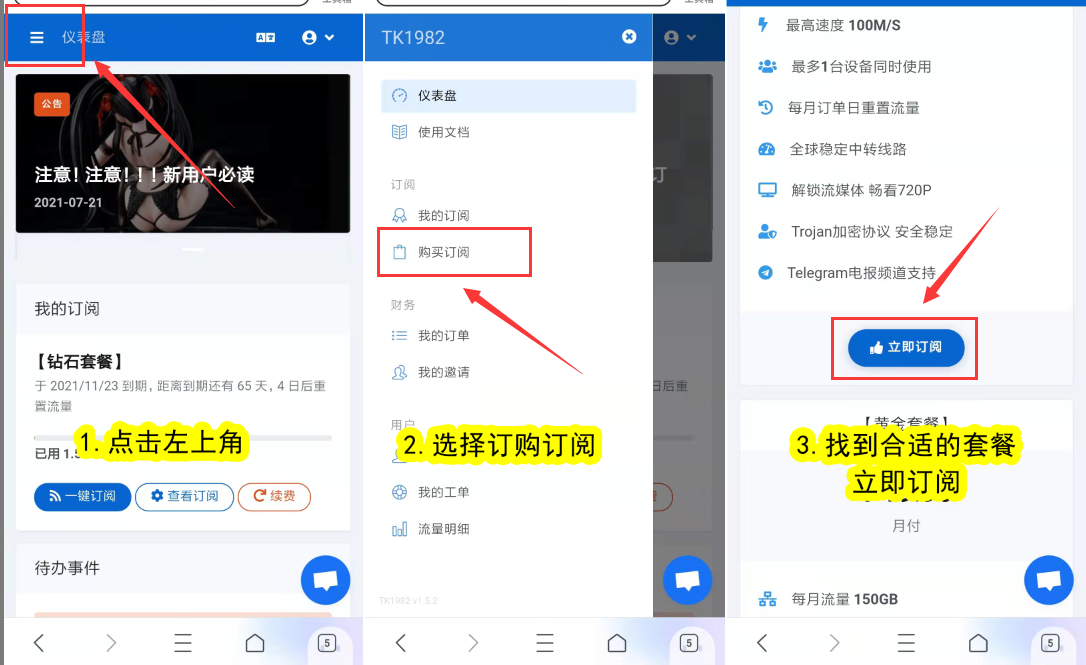 如果觉得前面提供的节点速度慢,或者是节点不能正常使用了,则需要购买正式套餐。