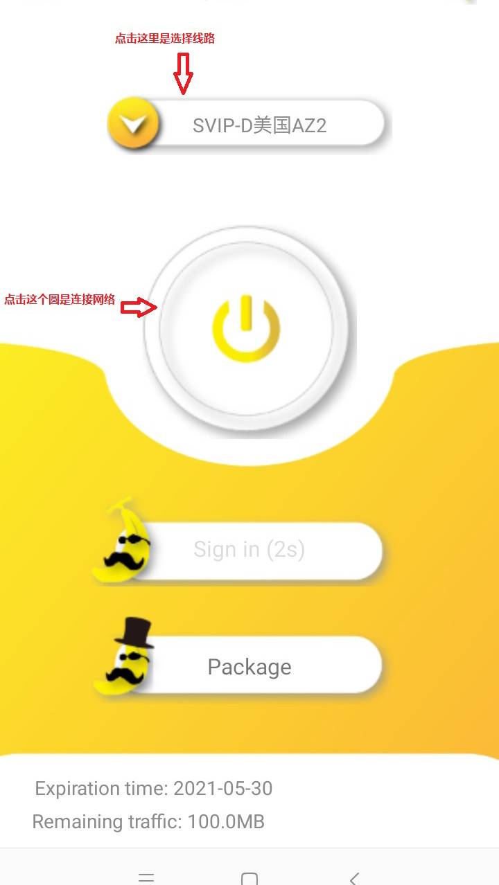 安装好香蕉工具 请先打开香蕉工具选择线路连接上(点击中间带黄色的圆连接网络)